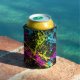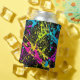 Luminoso manto de pintura de neón, este diseño presenta un patrón de manchas de pintura de neón brillante sobre un fondo negro.