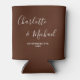 Cheers to the happy couple with our custom Brown Script Minimalist Wedding Can Cooler! Featuring a stylish design and personalized with the names of the bride and groom and date, these can coolers are the perfect addition to your special day.