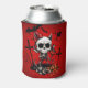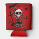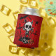 Calabaza Mágica y Diversión Humana. En medio de un oscuro cementerio, un alegre esqueleto personalizado se alza sobre un montón de piedras templadas. El esqueleto, con sus extremidades óseas y su maliciosa sonrisa, lleva un impresionante arco rojo alrededor de su cuello y ha apuntado cuernos del diablo que le dan una expresión juguetona pero traviesa. En su mano derecha, sostiene orgullosamente una linterna en forma de calabaza brillante sobre un palo largo, cuya cálida luz irradia suavemente en el entorno. El fondo del diseño es un rojo vibrante que subraya el espíritu festivo de Halloween.