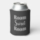Un refrigerador de bebidas divertido con un camper en la parte delantera...agregar nombre para firmar para personalización. Los mensajes, "Lo que pasa en el camper... se queda en el campanario" en la parte delantera y "Roam Sweet Roam" en la parte trasera.