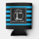 Faro clásico con su nombre de capitán o nombre de barco personalizado en un Refrigerador de bebidas rayado azul claro y negro.
