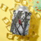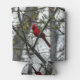 Un cardenal macho sentado en mi árbol Mimosa a principios de la primavera.
