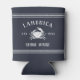 Estos geniales refrigeradores de bebidas personalizados de la casa en la orilla muestran su nombre familiar en un fondo azul marino, con su año establecido y un ilustracion de cangrejo. La raya de los árboles que se detalla en la parte superior e inferior completa el diseño de un estilo náutico rústico.