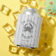 Este refrigerador de bebidas de la casa de playa tiene un fondo de madera con cangrejo. Personalice el nombre de la familia y el año establecido.