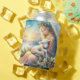 This enchanting scene captures a tender Christmas angel cradling a peaceful lamb against a glowing winter sunrise. Surrounded by a snowy forest, evergreen branches, and delicate holly adorned with berries and poinsettias, the image evokes a deep sense of serenity and spiritual warmth. Soft pastel tones blend with radiant light and starry skies, highlighting the angel's flowing gown, feathered wings, and gentle expression. White doves soar overhead while distant lambs graze across a frost-kissed field, enriching the overall sense of calm and holiday reverence. Ideal for evoking feelings of divine comfort and the quiet magic of a spiritual Christmas, this ethereal winter scene blends elements of peaceful nativity and holiday tranquility. Designed to inspire and uplift, this composition brings a timeless message of peace, innocence, and grace. AI generated artwork.