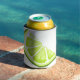 Refrigerador de bebidas Koozie Sleeve con diseño gráfico de Citrus Lime Wedge Slice lleno de jugosos colores verde cal por TheFabricSeal | Zazzle. La tienda también cuenta con una sección de cuña de limón y una sección de cuña de naranja de pomelo, ideal para mezclar y emparejar.