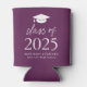 Dé a sus invitados de graduación un favor de fiesta que usarán con esta clase moderna de refrigerador de bebidas de graduación de 2025! El refrigerador de bebidas personalizado presenta un tapón de graduación en la parte superior del diseño con la "Clase de 2025" mostrada en negrita con letras blancas en un fondo morado. Personalice al refrigerador de bebidas morado con el nombre del graduado, la escuela y el año de graduación. El diseño se repite en la parte posterior. Este regalo personalizado de graduación y el favor de la fiesta son perfectos para graduaciones de secundaria y universitarias.
