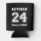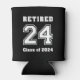 Muestra "RETIRED 24 Class of 2024" en texto colegiado de tapa completa, similar al dorso de las camisetas de fútbol, hockey y otros deportes. Cambiar los colores de fondo. Guay, diseño divertido para las personas que se retiraron en el año 2024, a quienes les gustan los deportes, los ancianos que se graduaron de la universidad en 2024 y los que disfrutan de la jubilación.