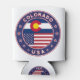 Insignia de Colorado con bandera de Colorado y bandera de los colores de EEUU, forma redondeada. Emblema de Colorado. Sello de Colorado. Colección de Estados Unidos.