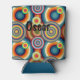 Este refrigerador de bebidas tiene un diseño Bauhaus de diferentes grupos de círculos concéntricos en los colores de los años 70. Mantenga el nombre y el tipo de letra, cambie uno o ambos, o suprímanlos completamente.