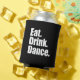 DISEÑO FRONTAL Y POSTERIOR -- Comer. Beber. Bailar. | Favor de recepción de boda ~ Los colores son negro y letras blancas en negrita. Un divertido CUBREBOTELLA para usar en su cena de ensayo o día de la boda. Personalice con sus nombres y fecha de boda que aparecerán en la parte posterior. Si desea un color diferente para que coincida con los colores de su boda, por favor envíe un correo electrónico a paula@labellarue.com antes de realizar un pedido y se creará una nueva plantilla.