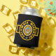 Refrigerador de bebidas negro con diseño de círculos concéntricos negros, dorados y blancos sobre un rectángulo negro y dorado con "COLUMBIA, MISSOURI CENTER OF THE UNIIVERSE" con Y-NOT-ME. Este diseño es un grito a Columbia, Missouri, una ciudad de campeones.