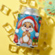 Adorable conejito personalizado en un sombrero de Santa se sienta entre nieve, adornos y regalos, evocando alegría de vacaciones con colores vibrantes y un ambiente festivo de invierno. Perfecto para tarjetas de felicitación de temporada y diseños de vacaciones.