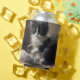 Sonríe cada vez que bebes una copa enlatada en esta encantadora obra de gatito. Esta pintura muestra un gatito alegre blanco y negro, atrapado en medio de una travesura, mientras juega con un paquete de cinta. La mirada del gatito se centra en la cinta, pues parece perdida en la alegría del momento. El fondo de la pintura es oscuro, lo que contribuye a acentuar la energía lúdica del gatito. En general, "Tangled In Fun" evoca un sentido de alegría e inocencia, capturando la naturaleza curiosa y juguetona de un joven felino en juego.