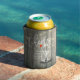 Plantillas de enfriador de lata / koozies para fiesta de boda - Letra elegante, copas de champán vintage y luces de cuerda en fondo de madera rústica.