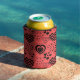 Este refrigerador de bebidas tiene el diseño de San Valentín de repetir corazones con diferentes gráficos dentro de un campo de rojo.