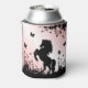 En un jardín rosa. Gran silueta de flores silvestres y mariposas flirteando mientras un stallión negro está cosechando