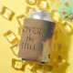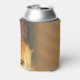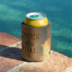 Enfriador de latas sobre la colina con diseño de hoguera. Perfecto para celebrar alrededor de una fosa de fuego o fogata. Cambia el texto, o elimínalo como desees. Un fondo de color arena bronceada con fuego y chispas está en ambos lados.