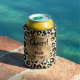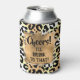 Moda de diseño de Relieve metalizado falso dorado sobre un elegante patrón de impresión de leopardo, las palabras "¡Salud! Beberé a eso" en la parte delantera y trasera y los detalles de tu fiesta de cumpleaños en la parte inferior de este divertido refrigerador de bebidas de bebidas. COINCIDIENDO elementos de nuestra colección.