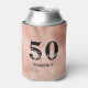 Este enfriador de lata personalizado moderno y elegante de 50 y fabuloso glamour celebra el cumpleaños número 50 de esa persona especial. Tiene un fondo metálico de rosa dorado con tipografía elegante en blanco y negro.