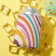 Resumen ilustracion de estilo retro de decoración colorida (amarillo, azul, naranja, violeta, rosa, beige, turquesa). Es fácil de personalizar cambiando los nombres/fecha/texto, etc.