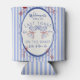 Keep the drinks cool and the vibes high with this custom “Last Toast on the Coast” can cooler — the perfect beach bachelorette party favor! Featuring chic blue-and-white stripes, wine glasses, and beach chairs with bows, this coastal-themed koozie can be personalized with the bride’s name, year, and location.