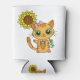 Enfriador De Latas Cute Orange Kawaii Cat with Sunflower