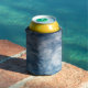Enfriador De Latas Denim De Jeans Azules, Fondo Texturado.