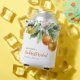 Un enfriador de latas para tu fin de semana de despedida de soltera. El diseño a doble cara presenta un arreglo boho acuarela de frutas cítricas que incluyen naranjas y limones con flores y vegetación. Personaliza con el nombre de la novia, fecha y ubicación.