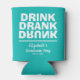 Estas neveras personalizadas para bebidas para la fiesta de despedida de soltera con la frase Drink Drank y la palabra Drunk al revés son divertidas para usar durante la celebración y para que los invitados se las lleven a casa como recuerdo. Mostramos un fondo turquesa, pero puedes cambiarlo a cualquier color.