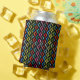 Este refrigerador de bebidas tiene un diseño geométrico de semirdiamantes que se repite a lo largo del diseño en colores que se desvanecen.