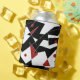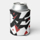 Varias formas geométricas de color blanco y rojo se reparten en un fondo negro, creando un contraste marcado. Algunas formas están interconectadas con líneas blancas finas y los puntos rojos agregan un toque de color a la composición.