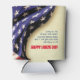 Elegante y patriótico refrigerador de bebidas del Día del Trabajo, mostrando la bandera de Estados Unidos en un fondo amarillo pálido. Hay un versículo de las Escrituras de personalizable tomado de Matthew, que es personalizable, así que puede cambiarlo a un mensaje personalizado o detalles de eventos, y agregar su nombre. Parte de la colección USA. Podrá elegir entre una amplia selección de refrigeradores de bebidas patrióticos y cristianos diseñados por los diseños bereanos.