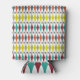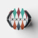 Este refrigerador de bebidas presenta un diseño moderno de mediados de siglo de diamantes estirados y estallidos en un campo blanco.