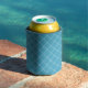 Easy on the eye - calming aqua blue. Features a repetitive geometric pattern.