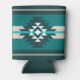 Patrón bohemio azteca con formas geométricas en color blanco, beige y turquesa sobre fondo a rayas