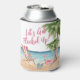 Enfriador de lata divertido de flamenco bebiendo. Un tema de playa de acuarela fresca con tonos de rosa y azul, que establece el ambiente para una escapada a la playa con la novia y sus mejores amigas, o para diversión de verano todos los días. Desde viajes a Florida, California o incluso algo más internacional como México, Hawái o Las Bahamas, ¡el fin de semana de chicas va a ser genial! Silla de playa rosa y blanca linda, paraguas e incluso un flotador de flamenco para diversión extra. Palmeras que se balancean, conchas para coleccionar, todo se trata de esas vibrantes vibraciones de la playa tropical. Con fuentes modernas que agregan un toque elegante, es el look perfecto para tu fin de semana de despedida de soltera. Solo tú y tu grupo, creando recuerdos contra un fondo de arena y mar. ¡Hay un elemento artístico adicional oculto si deseas más color! Hay un sol amarillo oculto en la parte delantera y trasera en el editor de diseño. Si deseas que se agregue, simplemente haz clic en el
