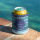 Un refrigerador de bebidas divertido con una onda abstracta y un fondo acuático. El mensaje, "Bienvenidos a nuestra piscina... salten y divertan" al frente. Personaliza con el nombre. La parte de atrás tiene el mensaje: "Las líneas de Tan se van a desvanecer, pero los Recuerdos durarán para siempre".