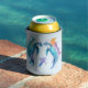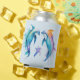 Ilustracion abstracto con dos lindos delfines azules con manchas naranjas y moradas