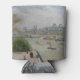 El Louvre, primavera. Camille Pissarro. Paisaje primaveral en colores cálidos. Un gran río fluye por la ciudad. Los barcos de vapor navegan a lo largo del río. En la orilla opuesta hay edificios altos. Hay nubes en el cielo. Reproducción de obras famosas de imágenes artísticas de dominio público.