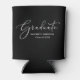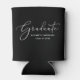 Chic enfriador de latas negro para brindar por la graduada en su fiesta de graduación con "graduada" en elegante escritura blanca y su nombre en tipografía moderna blanca simple.