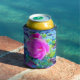 Enfriador De Latas Elegante flor rosa hibiscus con floaje Aqua
