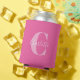Simple Monograma Personalizado y Nombre en Rosa Intenso para Enfriador de Lata