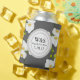 refrigeradores de bebidas bonitos de orquídeas blancas elegantes con un color de fondo gris medio. Incluyen las iniciales de la novia y el novio y la fecha de su boda, así como la frase "feliz para siempre".
