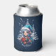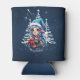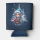 Un elfo alegre que brilla con su largo y florido cabello azul. Su cabello parece brillar en la luz suave, dándole un brillo mágico. En su cabeza usa un lindo gorra de Navidades azules adornado con una pompa blanca que concuerda perfectamente con su atuendo. Su cálida sonrisa irradia alegría y calidez, dando a los espectadores un sentido de anticipación festiva. El fondo del diseño está formado por elegantes árboles blancos de Navidad y el cielo está salpicado de brillantes estrellas blancas que brillan como pequeños diamantes, creando una atmósfera mágica.
