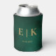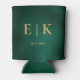 Emerald Green & Gold Monogram Wedding Can Cooler | Personalized Elegant Luxe Initial Beverage Holder