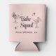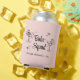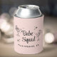 Recuerdos femeninos enfriadores de lata rosados para tu despedida de soltera con ilustraciones de chicas de fiesta tomando el sol en vasos de cóctel, estrellas de brillo retro, "Babe Squad" en una tipografía retro y la ubicación de tu fiesta u otro texto en tipografía simple.