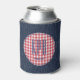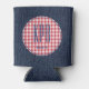 La impresión de mezclilla azul oscuro y el clásico marco circular de cuadros rojos y blancos vintage cubren este enfriador de latas de moda con iniciales delgadas y elegantes y nombre moderno en azul oscuro. Cambie fácilmente el nombre y las iniciales utilizando la plantilla proporcionada. Se ajusta a latas estándar de 12 oz. La tela duradera y fácil de limpiar durará años y mantendrá su bebida fría. El material de espuma colapsable facilita el almacenamiento. Consulte "Acerca de" para obtener más información.