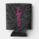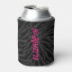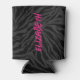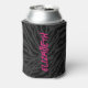 Una divertida impresión de leopardo negro sobre carbón cubre este enfriador de latas personalizado con su nombre impreso verticalmente en letras rosa caliente y chic en la parte delantera y trasera. MÁS diseños en nuestra colección.