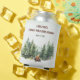 Refrigerador de bebidas con bosque de pinos y fogata. Todo está colocado sobre un fondo blanco y verde claro. Perfecto para su próxima reunión familiar, cumpleaños o cualquier evento con temática natural. Personaliza fácilmente todo el texto. - Kate Eden Art.